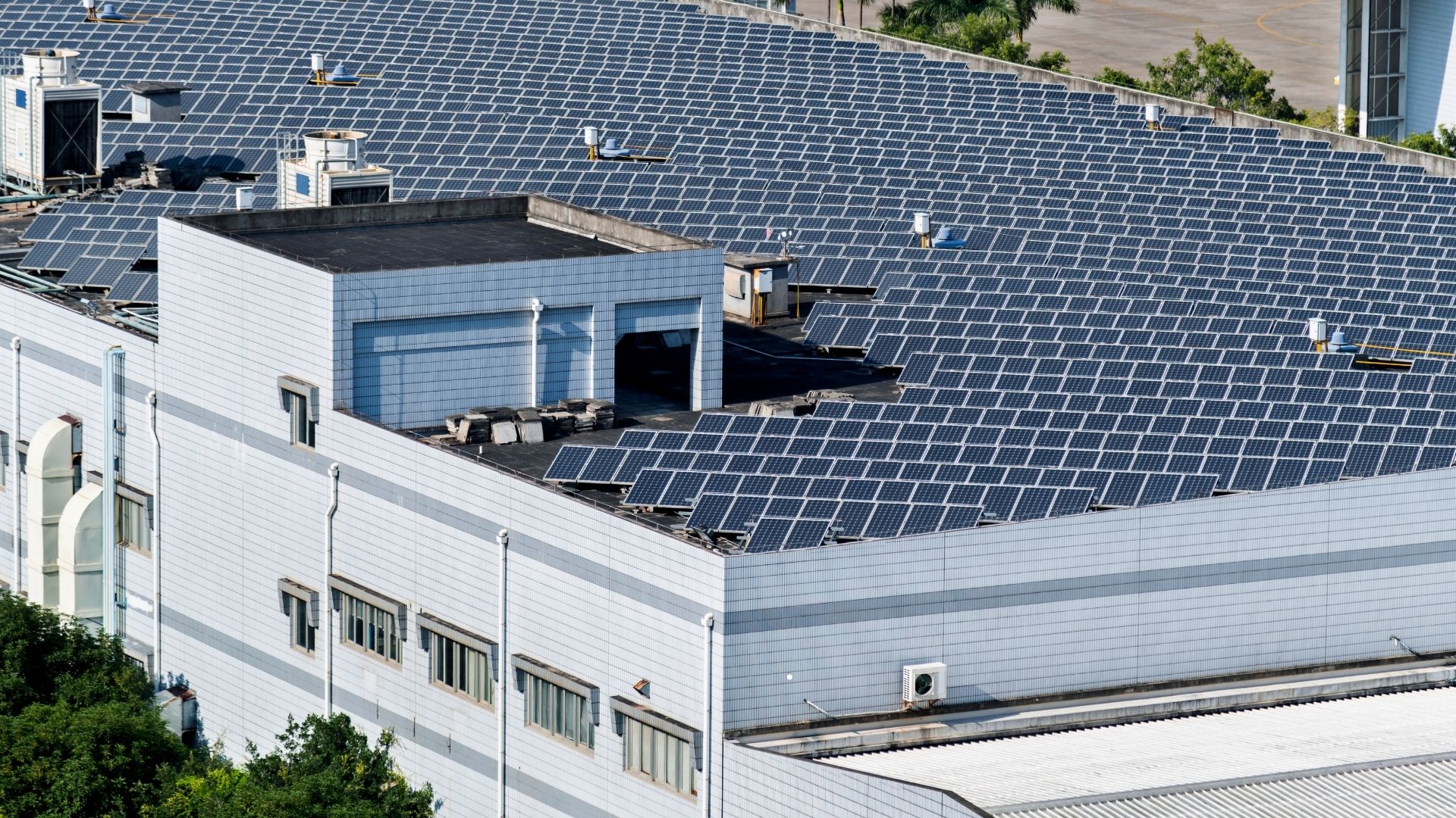 <p>Roof-mounted PV systems on 6 buildings PV canopies (marquesinas) in