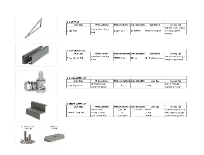 Saha Tipi Solar enerji taşıyıcı sistemleri Alüminyum-çelik veya tamamen çelik olarak tasarlanabilmekte ve farklı kombinasyonlarda üretilebilmektedir.